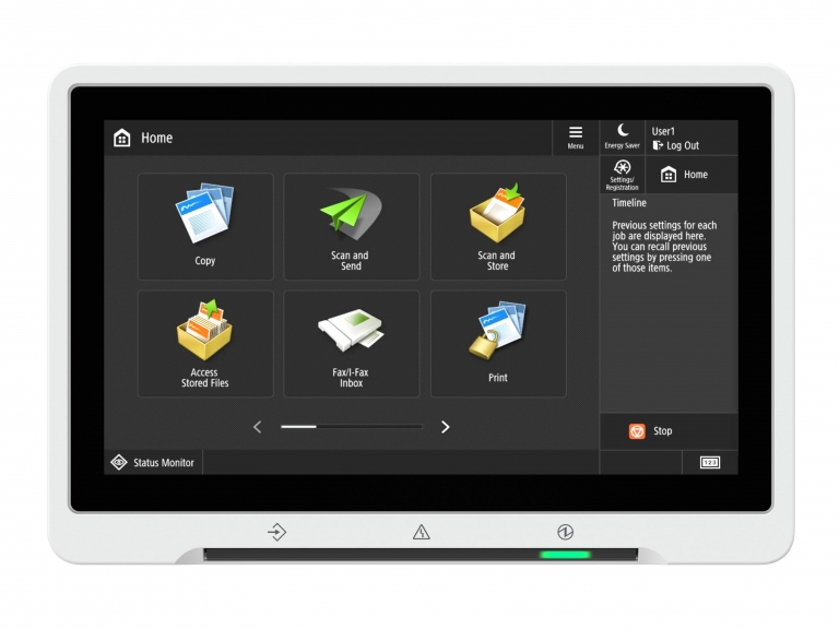 有別於傳統商用複合機繁複操作流程,Canon imageRUNNER ADVANCE DX系列,使用者介面UI全新設計與升級,配備新一代10.1吋彩色觸控面板,讓使用者更可以,簡單與直覺操作所有複合機功能。除此之外,在大量列印時等待操作及出紙的時間非常長,而imageRUNNER ADVANCE DX首次搭載高階影像伺服器功能「熱資料夾 (HOT folder)」,使用者無須以人工進行分開列印的流程,僅需將須作業的文件拖曳至資料夾中,便可一鍵完成大量文件列印,根據統計,當列印5種不同文件時,一般無Hot folder功能需耗時150秒,而透過Hot folder列印操作僅需30秒的時間,減少了將近5倍將文件分開傳送的等待時間,滿足現在辦公室文件電子化列印需求。