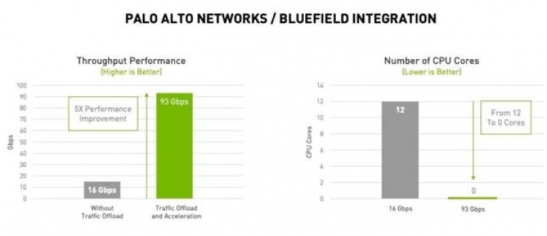 由 DPU 加速的 Palo Alto Networks VM 系列 NGFW 已在近期發布,採用零信任網路安全原則,由 DPU 擔任智慧網路篩選器,能夠以不佔用 CPU 的方式,對網路流量進行解析、分類和導流,使 NGFW 能夠在典型的應用中達到近每秒 100Gb 的傳輸量,效能為單用 CPU 的 VM 系列防火牆的五倍,而與傳統的硬體方案相比,可節省高達 150% 的資本支出。