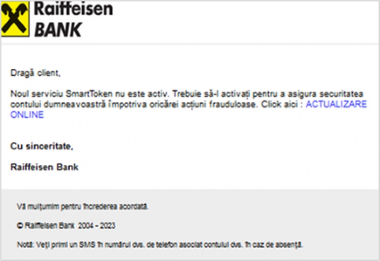 瑞福森銀行網路釣魚電子郵件—帳戶竊取範例