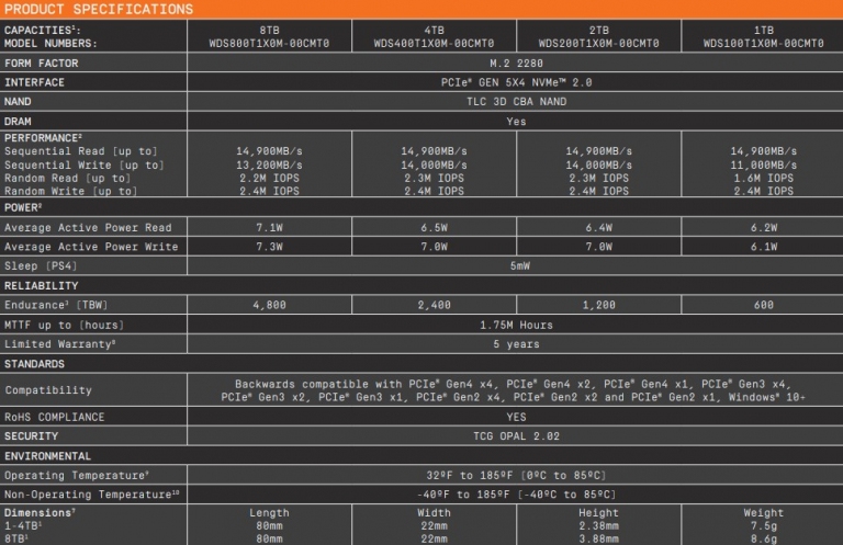 ●8TB:WDS800T1X0M-00CMT0