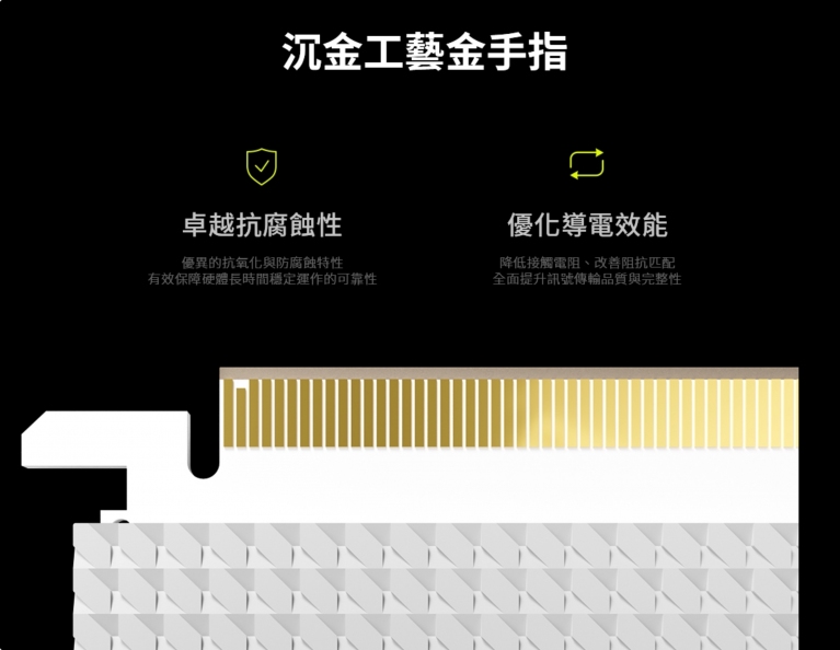 全端子鍍金處理,提升導電效率並延長使用壽命,有效避免氧化與接觸不良。這項少見工藝,使顯卡長時間運作依然維持一致表現。PCIe 5.0 全速通道|128 GB/s 帶寬釋放