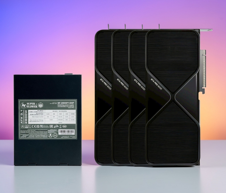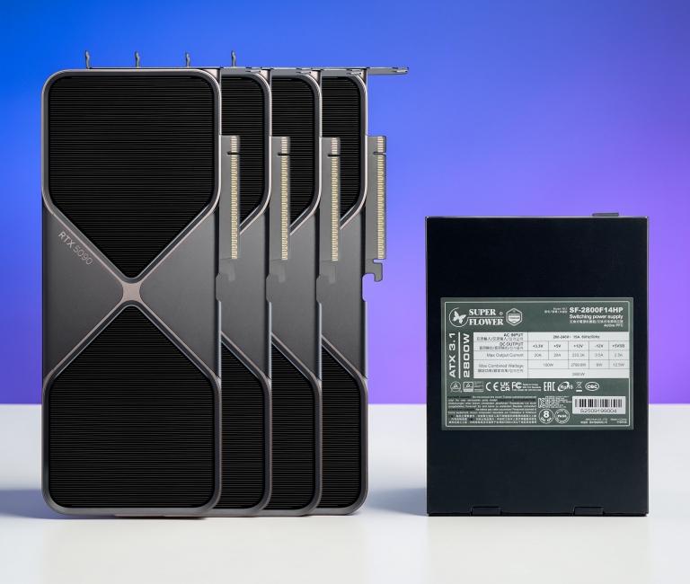 要安裝3~4張「GeForce RTX 5090顯示卡、RTX PRO 6000 Blackwell Workstation或H200 NVL加速卡」的話,「振華 SUPER FLOWER LEADEX TITANIUM 2800W ATX 3.1 電源供應器」都能滿足供電需求!