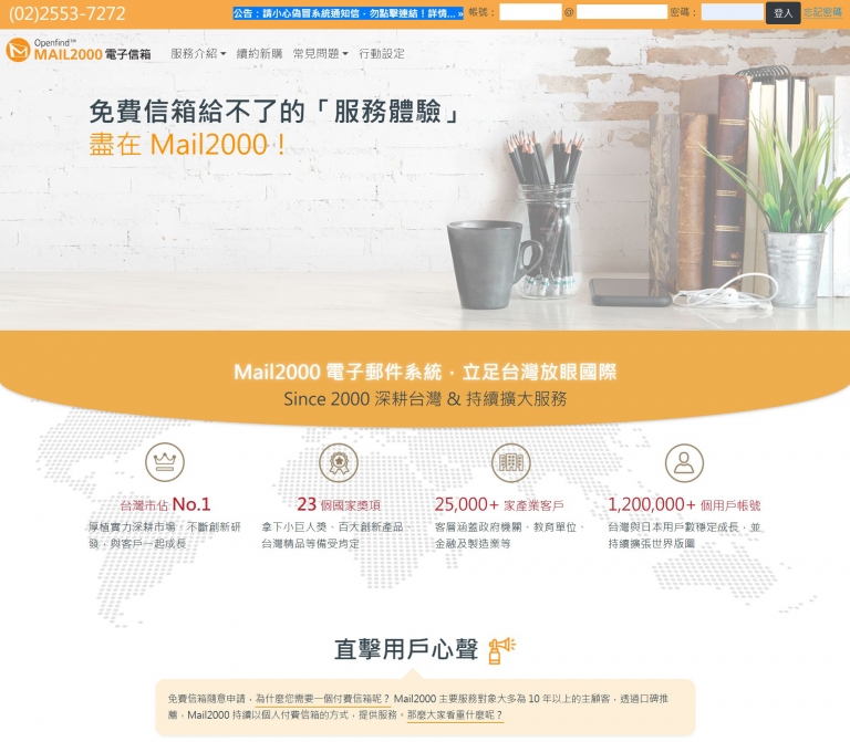 我們主打的理念,是安全穩定跟在地化!MailCloud有很安全治安的後援,包含有強大的監控機制,比方說有沒有人到訪,有沒有人受到駭客的威脅,我們都是第一時間監控,然後去幫客戶解決問題。甚至,客戶都還沒有發現出狀況的時候,我們就已經解決了!穩定性是我們最在乎的事情,25年來持續以不斷線與穩定為目標,穩定性達到99.95%,這是非常高的穩定性水準。MailCloud擁有台灣在地化的客服!客戶打電話來,無論是講國語、台語或英語,溝通上都沒有問題!因為有這樣長久的信任環境,是我們一直以來可以在品牌上比較有優勢的部分!