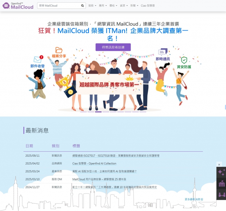 廠商名稱:網擎資訊軟體股份有限公司廠商網址: www.mailcloud.com.tw