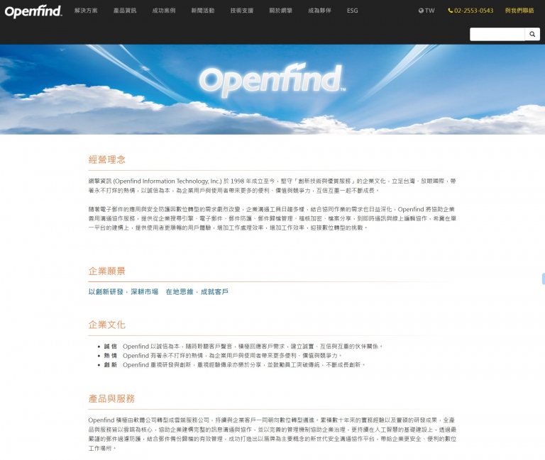Openfind 成立於 1998 年 1 月,長期致力於軟體產品與雲端服務自主研發,為政府機關、企業用戶與廣大網友提供高品質、高穩定與高擴充性的軟體與雲端服務。除了立足台灣市場外,Openfind 成功開拓日本市場、東南亞與新興市場,並以外銷成果卓著獲得第 20 屆小巨人獎肯定。從企業電子郵件系統出發,到郵件安全防護、稽核、歸檔系統,以及檔案安全分享平台,Openfind 堅守「創新技術與優質服務」的企業文化,提供兼顧資訊安全與成本效益的解決方案,除各項產品皆獲得台灣精品獎肯定外,2024 年更榮獲國家磐石獎取得中小企業最高榮耀。現場直擊專訪