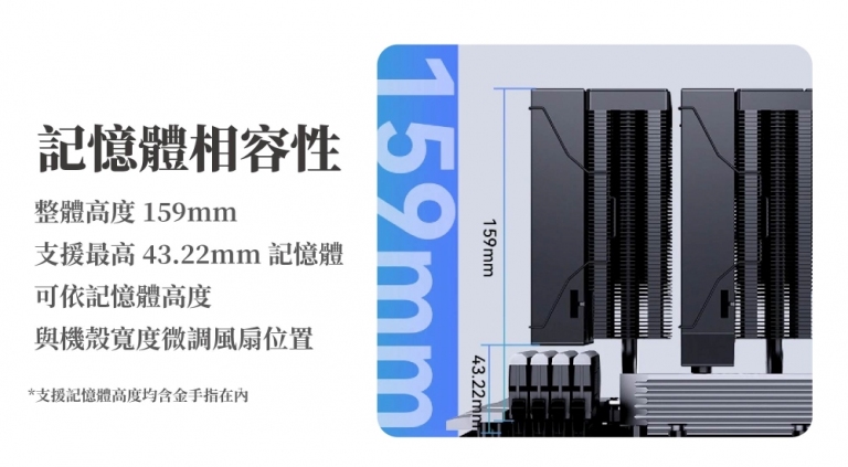 ● 避讓設計: 塔體採偏移配置,避開高階記憶體干涉,確保裝機過程從容不迫。