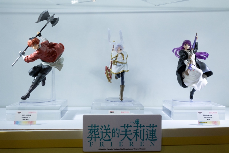 現場將搶先販售「學園偶像大師小不點玩偶~校園生活~」部分商品(上圖左)、「HUNTERxHUNTER 獵人 Grandista 奇犽」公仔(上圖中),以及「葬送的芙莉蓮 MAXIMATIC 修塔爾克」模型(上圖右)等新品。