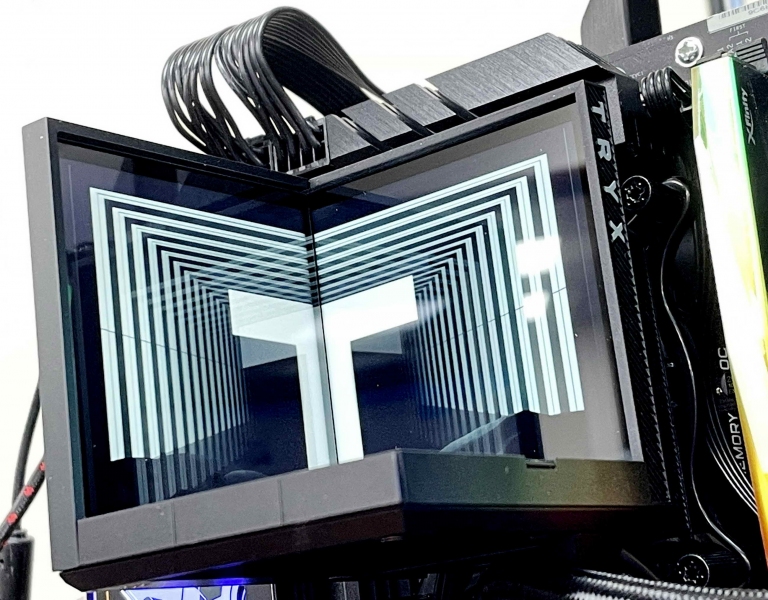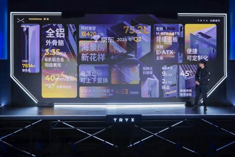 TRYX在2023年發表的首發產品,則是「PANORAMA 展域」AMOLED曲面螢幕一體式水冷散熱器,以及「LUCA 路氪」ATX海景房電腦機殼,與「ROTA 暗星」風扇。「PANORAMA 展域」用的是6.5英寸可視面積超大螢幕和2K 解析度、6.67英寸大螢幕、60Hz 的刷新率AMOLED曲面螢幕,具備裸眼3D效果,搭配Asetek Sigrid v2方案,並使用360mm尺寸水冷排,官方額定解熱能力為TDP:280~300W,KANALI軟體來做控制。「LUCA 路氪」用的則是雙面玻璃透側設計,搭配窄腰身,對應雙420mm水冷,以及模組化設計,完整支援BTF背插式,460mm顯示卡安裝,背部理線方式,隱藏式雙艙電源供應器配置,加上散熱最佳化,並使用了懸浮底座,可以展現海景房的優越質感。「ROTA 暗星」風扇,則有ARGB版本與PRO版本,有正葉扇與反葉扇。