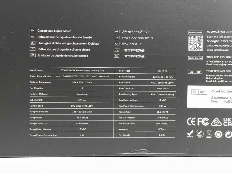 「TRYX 創氪星系」研發創新CPU一體式水冷散熱器,已經有好幾年的時間。最早是推出的CPU一體式空冷散熱器,就是全球第一款AMOLED曲面屏的一體式水冷散熱器「PANORAMA 展域」,引爆了模業界模仿,不少品牌致敬,相繼開發外觀極其相似產品,成為了近三年來,PC DIY業界最紅的一體式水冷散熱器。最新,「TRYX 創氪星系」以「立體創意舞台」概念,重新詮釋打造出了這款「TRYX STAGE 360 ARGB 創氪星系 影域」,並找來了老搭檔Asetek,搭配Asetek Sigrid v2方案,並使用360mm尺寸水冷排,官方額定解熱能力為TDP:280W。