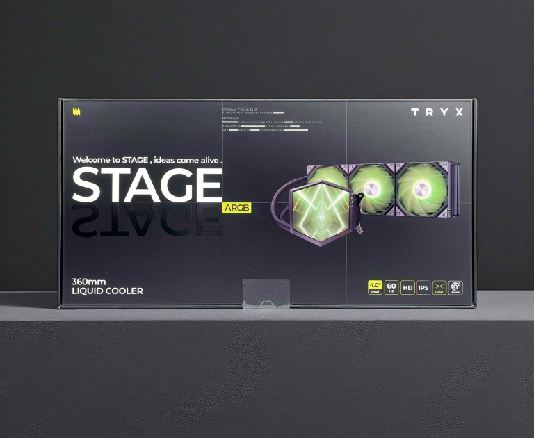 「TRYX STAGE 360 ARGB 創氪星系 影域」是針對想要打造全景舞台的玩家所設計開發。這款水冷散熱器,提供白色版與黑色版雙顏色,提供有360mm(120mm x3風扇)規格版本,適合用來PC DIY打造海景房。雙螢幕全景舞台設計,用上翻轉雙面舞台底座!