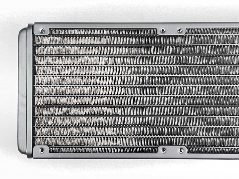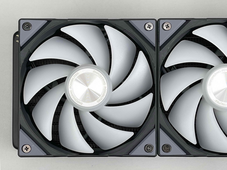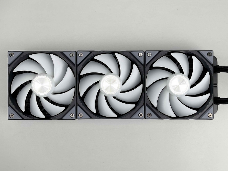 「TRYX STAGE 360 ARGB 創氪星系 影域」水冷方案,則是找來了Asetek操刀,用上Asetek Sigrid v2方案,水冷排用上360mm規格,使用鋁合金水冷排,搭配高密度單波散熱鰭片。散熱能力的部分,官方額定解熱能力為TDP:280W,PCDIY!實測解熱能力超越TDP:380W,擁有強大的散熱能力。