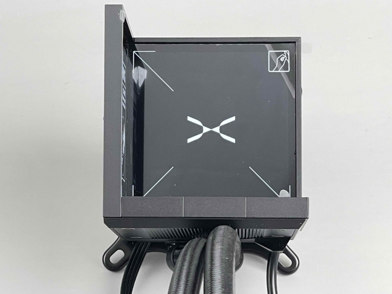跟一般CPU水冷散熱器不同!「TRYX STAGE 360 ARGB 創氪星系 影域」用上了分離式水冷頭設計,有別於整合式水冷頭無法變化風格,底下的水冷頭安裝完成之後,用上了獨特的扣具,TRYX叫做SATGE舞台鎖定結構,可以把上方的高質感鋁合金邊框設計的翻轉雙面舞台底座,安裝於水冷頭。翻轉雙面舞台底座,上面有兩片雙4.0吋螢幕,本身為IPS面板,提供廣視角顯示,具備16.77萬色全彩顯示,提供了254PPI高解析度畫面,並內建雙核心CPU嵌入式方案,當螢幕顯示照片、動畫與3D特效時,不用耗費電腦CPU資源,確保流暢的做畫面顯示。