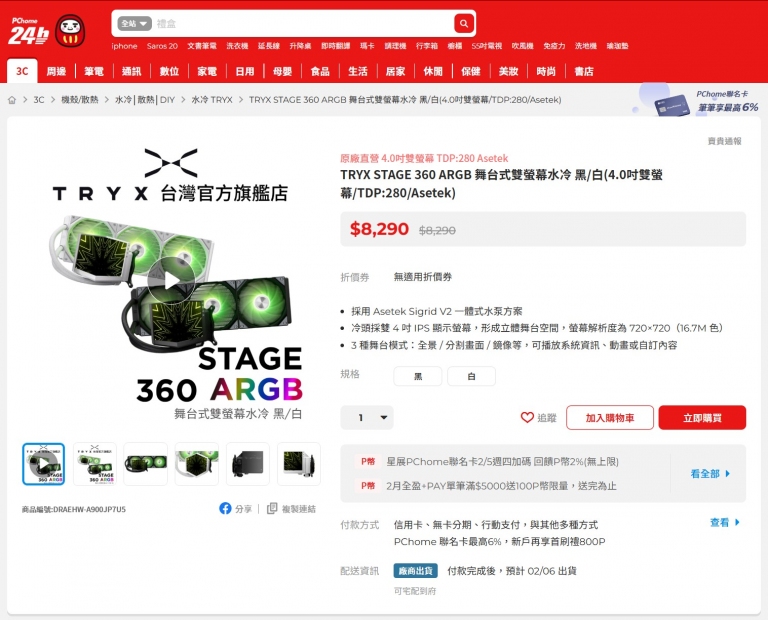 「TRYX STAGE 360 ARGB 創氪星系 影域」CPU一體式水冷散熱器已經上市,可以在台灣實體通路與虛擬通路買到。最新報價