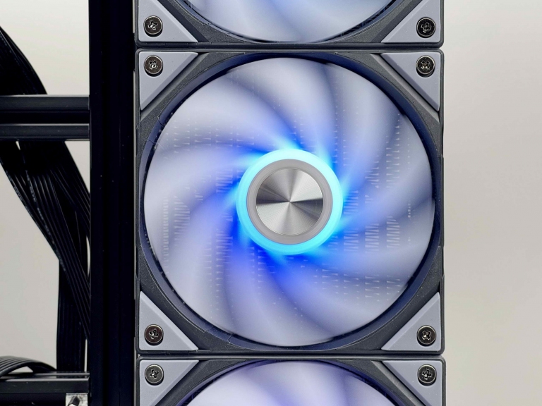 這款CPU一體式水冷散熱器,預裝3組「ROTA SL ARGB 暗星 風扇」,具備了「轉速 500~1,850 ± 10% 轉」水準,散熱效能相當不錯,不但省下用戶組裝風扇時間,也採用了無線拼接方式,透過串接走線完成,只需要接上水冷頭與水冷排的電源線與ARGB連接線,輕輕鬆鬆就能組裝完成。水冷排厚度27.0mm鋁合金設計,搭配高密度單波散熱鰭片!