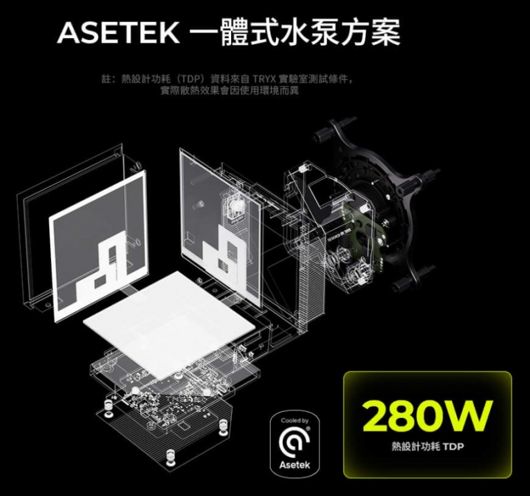 搭配Asetek Sigrid v2方案,官方額定解熱能力為TDP:280W,PCDIY!實測解熱能力超越TDP:380W
