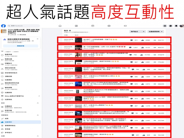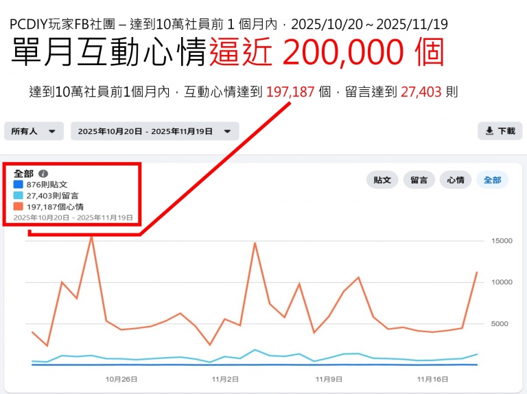 PCDIY!經營科技社群媒體有成!目前,PCDIY!玩家FB社團,社員超過 10 萬人,台灣社員比例超過 9 成,更有來自香港、馬來西亞中國、美國等外國社員。單月瀏覽人數,超過 1,000 萬人,單月互動心情逼近 200,000 個,已經達到科技社群媒體基本水準。PCDIY!正式前進科技社群媒體,30年科技媒體再下一城!從傳統媒體單向報導,轉向為與社群共創共榮,與玩家、店家、專家及新手與IT資訊人員更緊密互動,提供更多元的內容與報導。