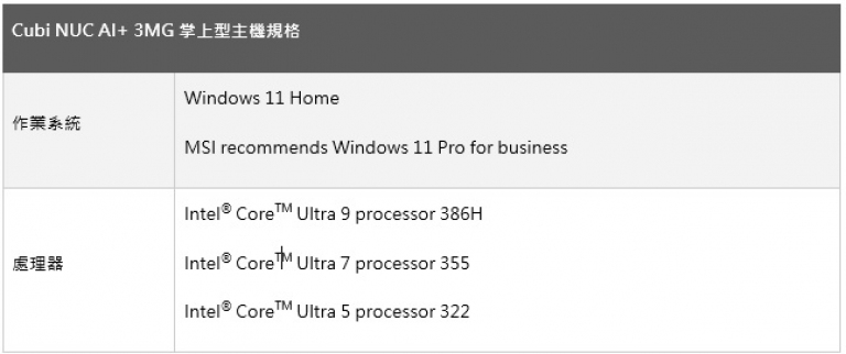 https://tw.msi.com/Business-Productivity-PC/Cubi-NUC-AI-Plus-3MX
