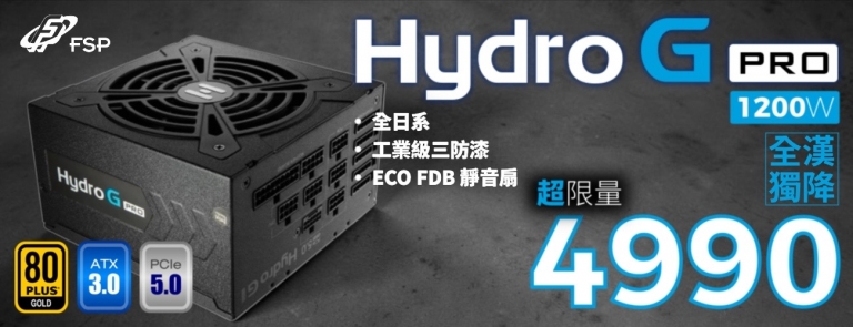 「Hydro G PRO 1200W 系列」限量優惠,1200W版本直接下殺至 NT$4,990
