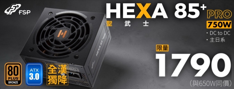 本次活動精選兩款市場熱銷電源,從入門高CP值到旗艦高效能皆涵蓋,提供玩家與系統整合商更靈活的升級選擇,數量有限、售完為止。「銅牌聖武士 HEXA 85+ PRO 系列」限量優惠,750W 版本直接下殺至 NT$1,790