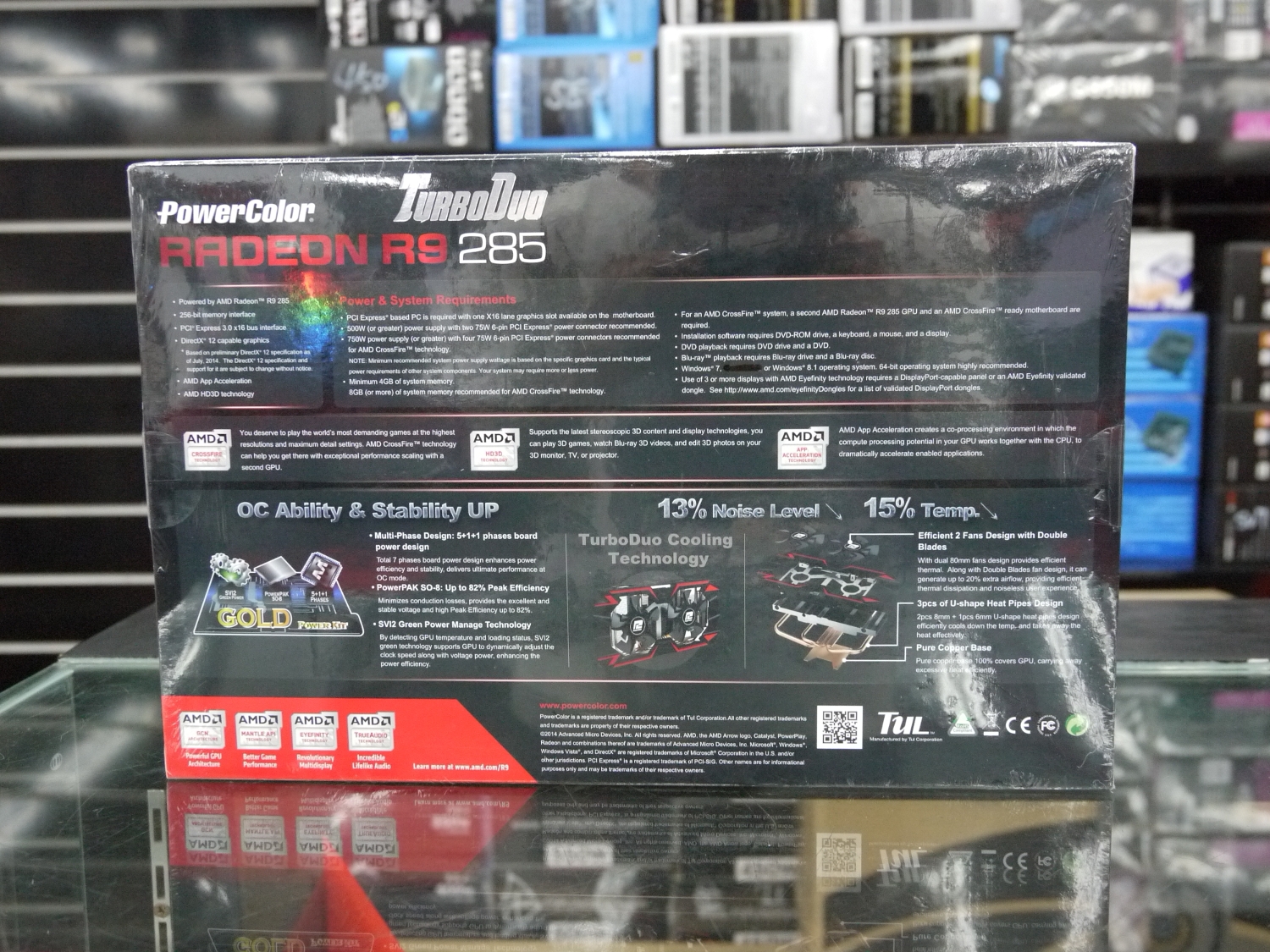 由於GPU為新款的Tonga,因此功能上和R9 290系列一樣,比R9 280X和R9 280多了TrueAudio、Free Sync和Next Gen AMD CrossFire的支援。第一線賣場方面,採訪當下,原價屋只有一張PowerColor(撼訊) TurboDuo R9 285搶先到貨,售價在R9 280X和R9 280之間,為7990元。最近則有進貨了華碩STRIX-R9 285-DC2OC-2GD5/2GB,報價為8990元。採訪當時小編也詢問了其他店家,極品專賣、慶聲等店家表示沒有進貨。原本AMD還計畫推出R9 285X顯示卡,但在NVIDIA推出GeForce GTX 980與GTX 970之後,R9 285X似乎已經取消上市計畫,未來勢必得盡早推出新一代的顯示卡,否則很難與對手競爭。關於R9 285顯示卡效能部分,可參考延伸閱讀文章。